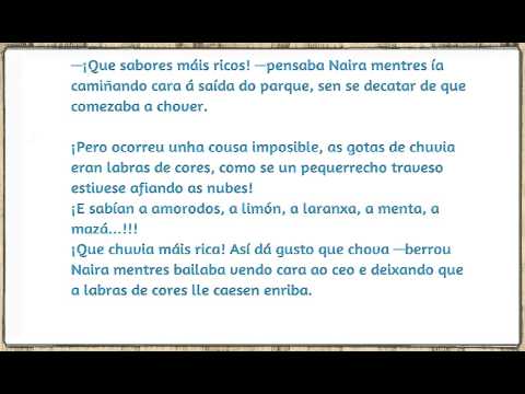 !Me encantó realmente! Es un cuento preciosoooo, precioso, estimulante, tiernecito, de los que llegan para quedarse y no irse y los niños lo cuentan muy bien, son tan riquiños. Seguro cada uno/a según lo que nos transmita un color le otorgamos un sabor diferente o bien según la afinidad hacia ese color o asociando el sabor de algo al color que te recuerde. =) Un abrazoooo enorme. Sigue escribiendo cosas tan bonitas y pasámelas porfi, bien sea en galego o no, jeje. =) PD: lo quiero en texto jeje me gustaría tenerlo así, si fuera posible, sino no pasa nada. =)